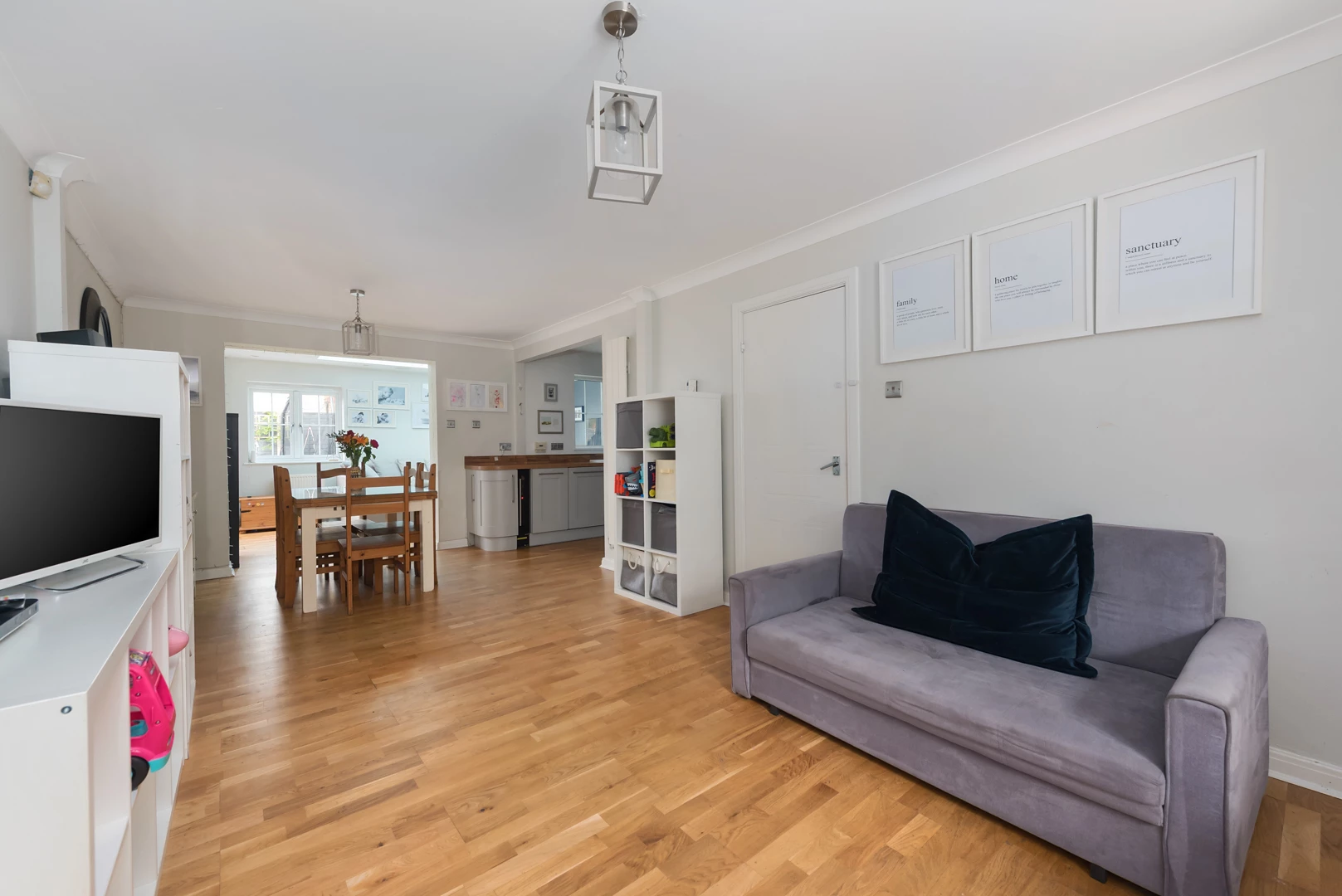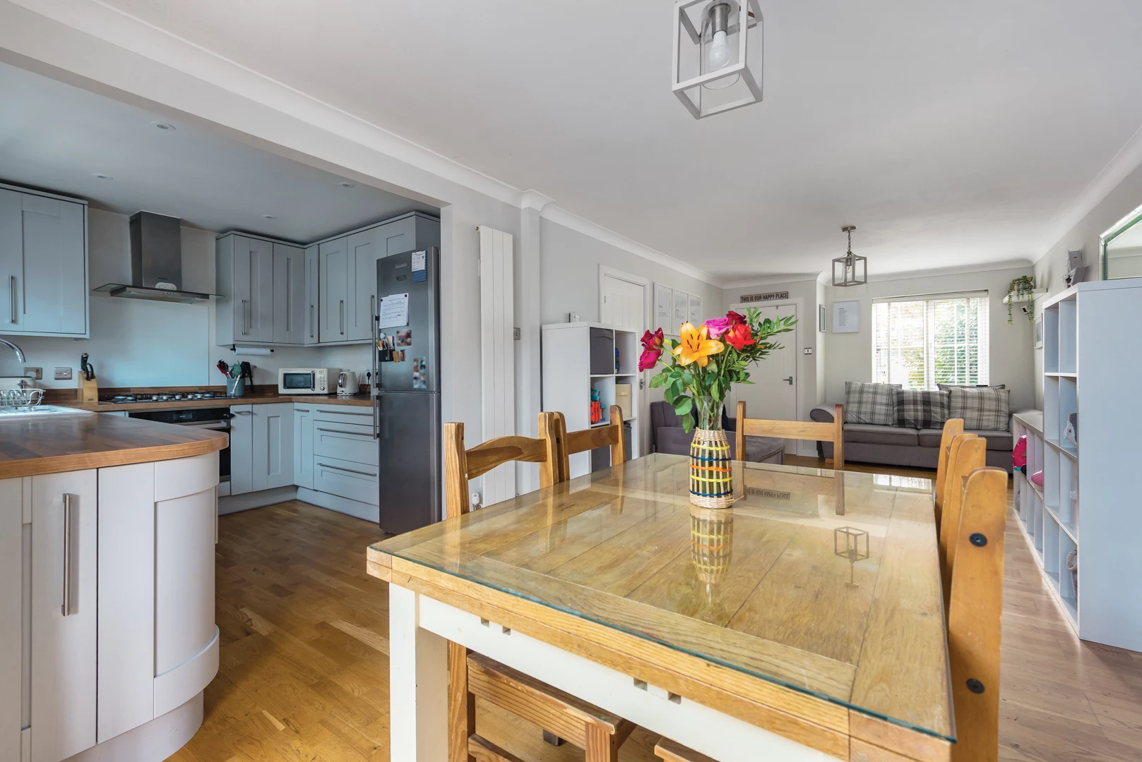 Set in the popular Sycamore Park development is this smart three-bedroom detached home that has been extended and opened up to suit modern family life. A welcoming hall flows into a full-length open-plan kitchen, dining and living area fitted with contemporary shaker cabinetry and warm woodblock worktops, with excellent preparation space around the gas hob and oven. Beyond this, a superb family room forms the heart of the house; flooded with natural light from a large lantern roof and dual-aspect windows, it creates an easy, sociable space for everyday living and entertaining with views over the garden. There is also a downstairs cloakroom for convenience