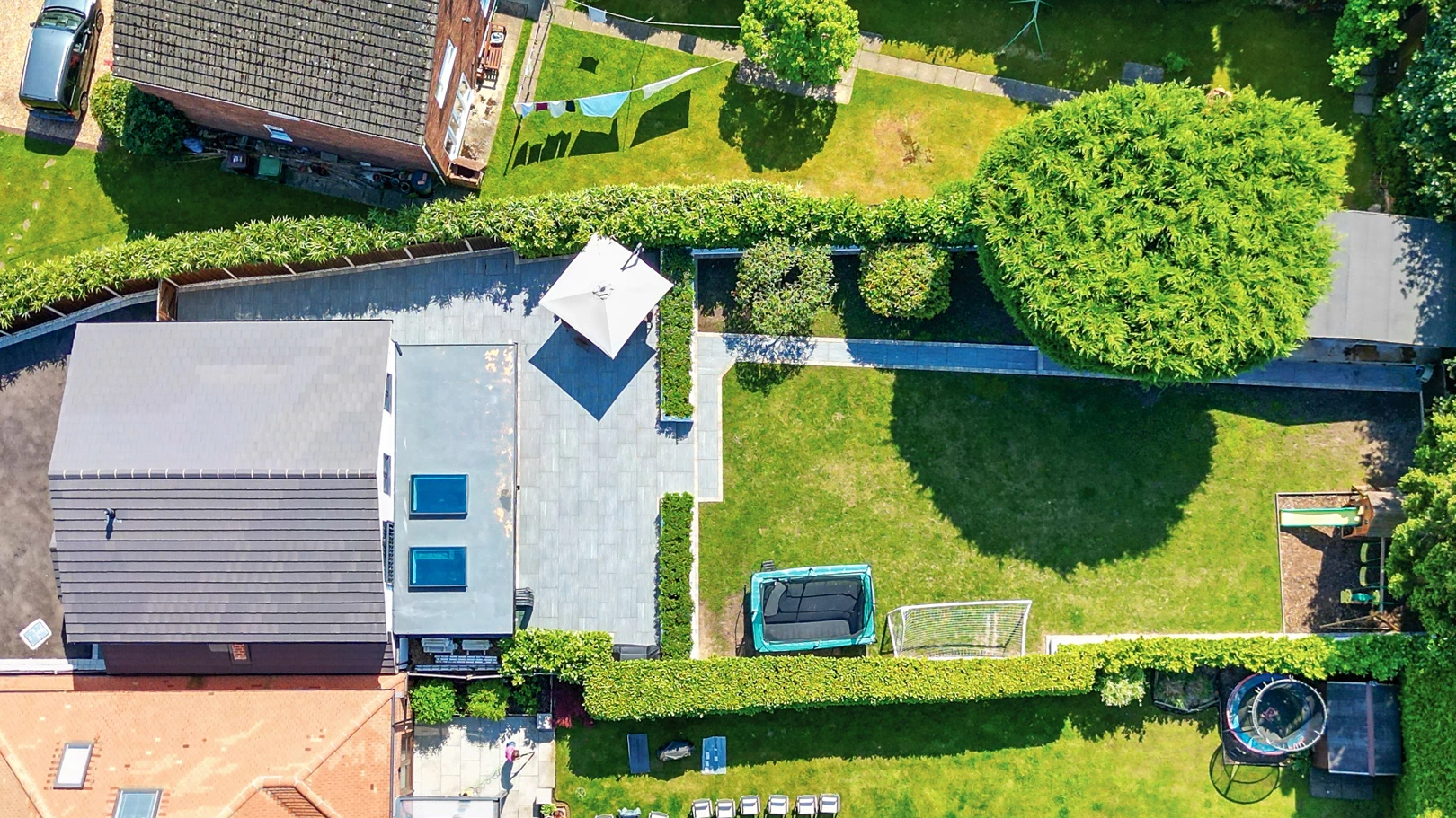 The landscaped rear garden is ideal for families and entertaining, with a large modern patio, barbecue area, level lawn, and raised planting beds for privacy and greenery. An aerial perspective highlights the generous plot, which is both secure and private—ideal for children to play safely.With approximately 1,717 sq ft of living space (as per floor plan), air conditioning, premium materials, and a turnkey finish throughout, this is a rare opportunity to acquire a standout home in a prime Farnborough location—within easy reach of reputable schools, local parks, and transport links to London and surrounding areas.