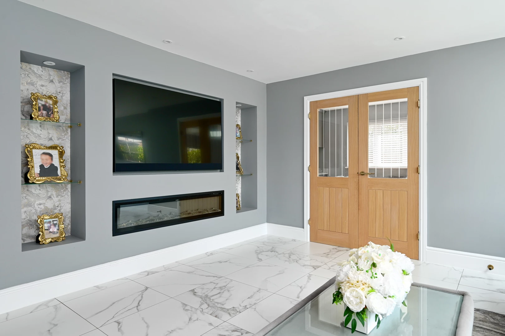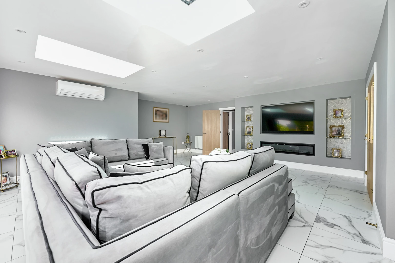 A striking four-bedroom detached family home that has been meticulously renovated to offer high-end contemporary living with superb attention to detail. Positioned behind secure electric gates with generous driveway parking, this home immediately impresses with its sharp modern exterior, landscaped frontage, and inviting kerb appeal.